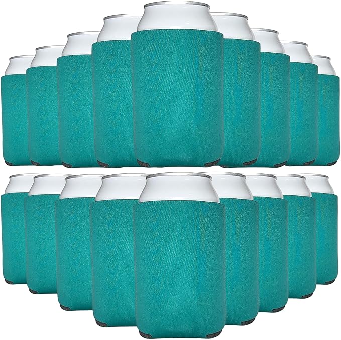 TahoeBay Blank Beer Can Cooler Sleeves (25-Pack) Bulk Sublimation Blanks for Vinyl Plain Soft Foam Can Sleeves Coolers for Soda Cans & Bottles Black, White, Assorted Solid Color (Teal)