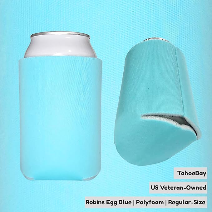 TahoeBay Blank Beer Can Cooler Sleeves (25-Pack) Bulk Sublimation Blanks for Vinyl Plain Soft Foam Can Sleeves Coolers for Soda Cans & Bottles Black, White, Assorted Solid Color (Robins Egg Blue)