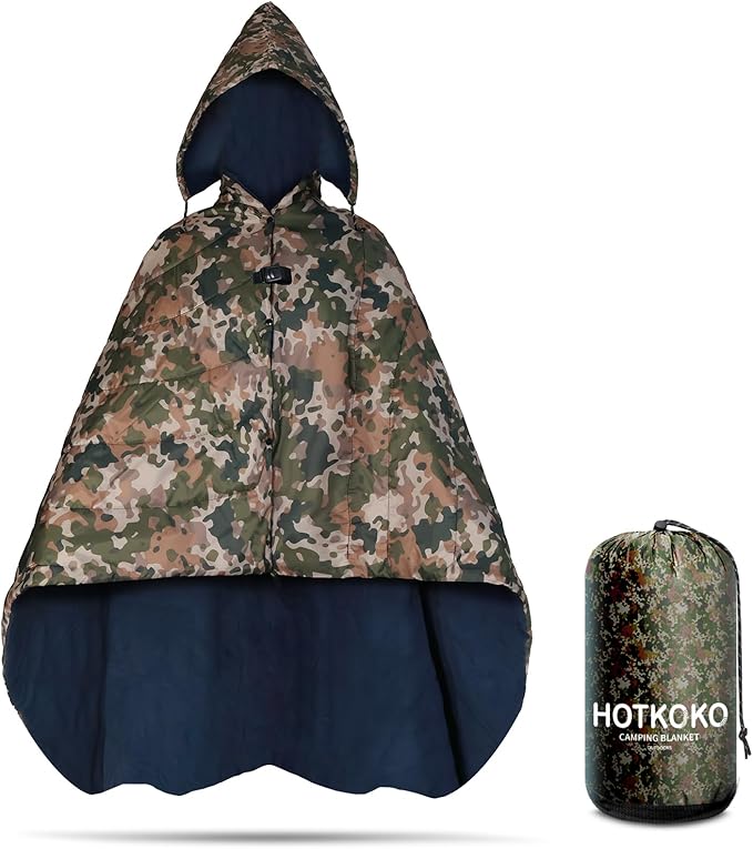 • STADIUM BLANKET WITH HOODED: The hotkoko Stadium Blanket is a wearable, removable and versatile poncho design. With an adjustable hood, it can be easily unfolded and converted into a poncho and cloak on rainy days.