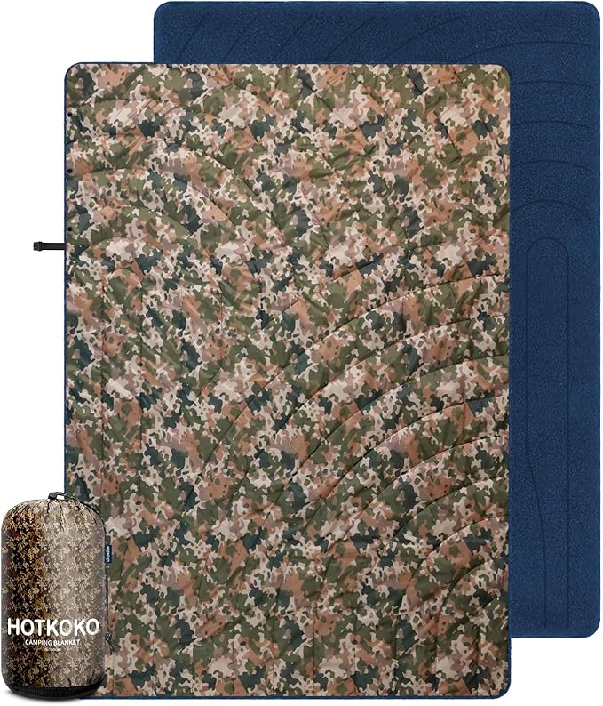 • WATERPROOF AND WARM:This fleece camping blanket is designed with three layers of waterproof and windproof nylon with a polyurethane coating and 300 grams per square of embossed polar fleece, the outdoor blanket is superbly waterproof, windproof and warm.