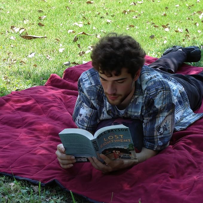 • WATERPROOF AND WARM:This fleece camping blanket is designed with three layers of waterproof and windproof nylon with a polyurethane coating and 300 grams per square of embossed polar fleece, the outdoor blanket is superbly waterproof, windproof and warm.