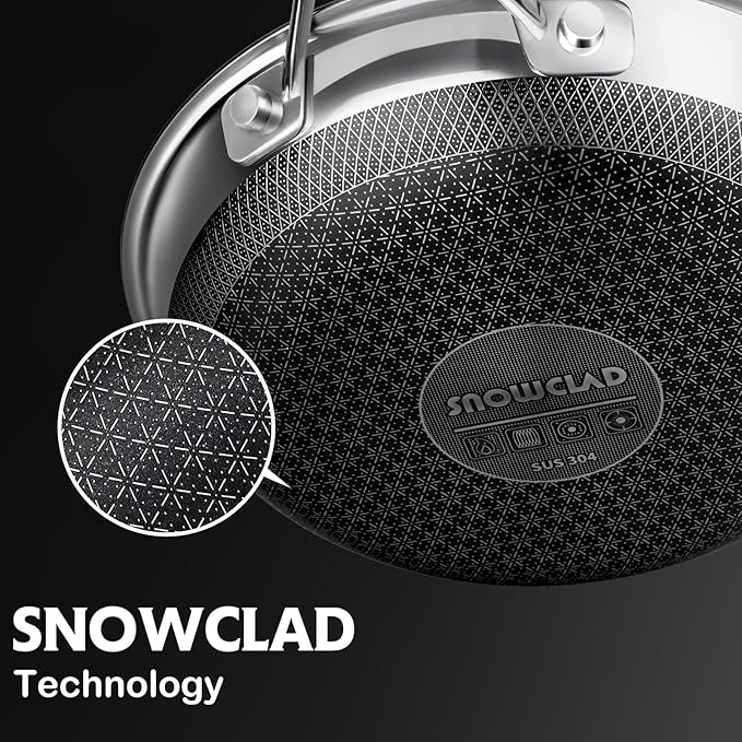 • [SNOWCLAD ENHANCED TECH]: Featuring a cutting-edge enhanced nonstick coating with a snowclad surface design, our non stick frying pans set offers longer-lasting, superior non-stick performance. No more worries about peeling or flaking—this set offers exceptional durability and is designed to withstand the use of metal utensils. Additionally, our clad surface is 50% larger than that of typical hex pans.