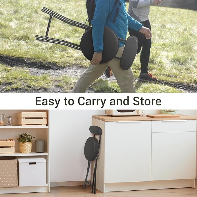 Cushioned Padded Folding Stools, Folding Bar Stool with Backrest, 220lb Capacity, 19 Inch Collapsible Round Portable Foldable Chair for Outdoor Indoor Kitchen Camping Fishing (Black, 2 Pack)
