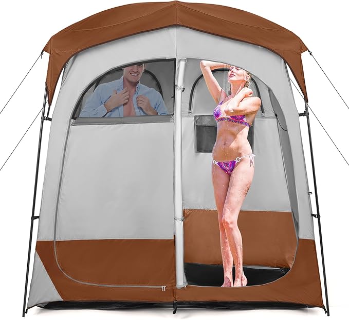 • Dual-Room for Privacy & Convenience: This oversized shower tent features two fully enclosed rooms (7' x 3.5' x 7'), separated by a zippered partition door, allowing simultaneous use for showering, changing, or storage. With ample space for two adults, it’s ideal for camping trips, beach days, or outdoor events where privacy and functionality are essential.
