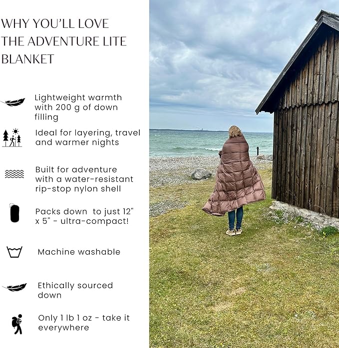 Down Camping Blanket with Footbox – Lightweight, Packable, Water Resistant Backpacking Quilt & Warm Puffy Compact Outdoor Throw – 52x77 with Stuff Sack for Stadium, Hiking & Travel