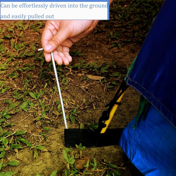 • Quick Installation: Simply push or tap into dirt, sand, or grass, no hammer needed (though compatible with one). Works on soft to medium soils, perfect for securing inflatable decorations, garden nets, or camping gear in minutes.