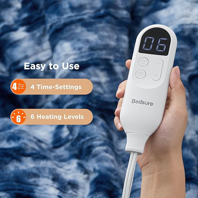 • CUSTOMIZABLE WARMTH: Experience quick, consistent, and safe warmth powered by PTC/NTC heating wire technology. This heated blanket features 6 heating levels and 4 time settings for personalized coziness, perfect for those always cold
