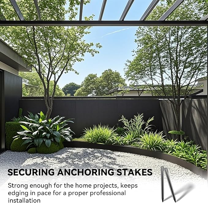 • UNIQUE DESIGN: The top of the landscape edging stakes are curved and the unique reinforcing ribs in the middle ensure a firm and effective use. The curved top and unique reinforced rib design in the middle of the lawn edging stakes ensure firm and effective use. Paired with corrugated garden edging, they can remain upright and prevent toppling, quickly solving your problems.