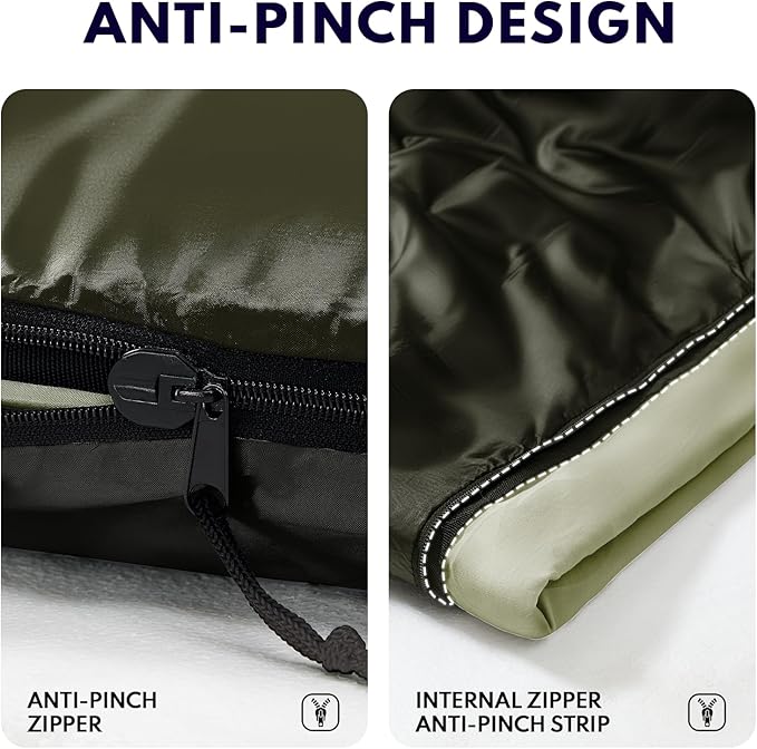• 【SUITABLE FOR 3-4 SEASONS】 Designed Temperature rated for 46℉to 70℉. It's perfect for spring, summer, fall, and cool weather. Recommended limit temperature: 30℉. High-quality durable polyester outer shell, stands up to years of use.Washed-cotton lining soft and comfortable against skin,bring a better sleep experience