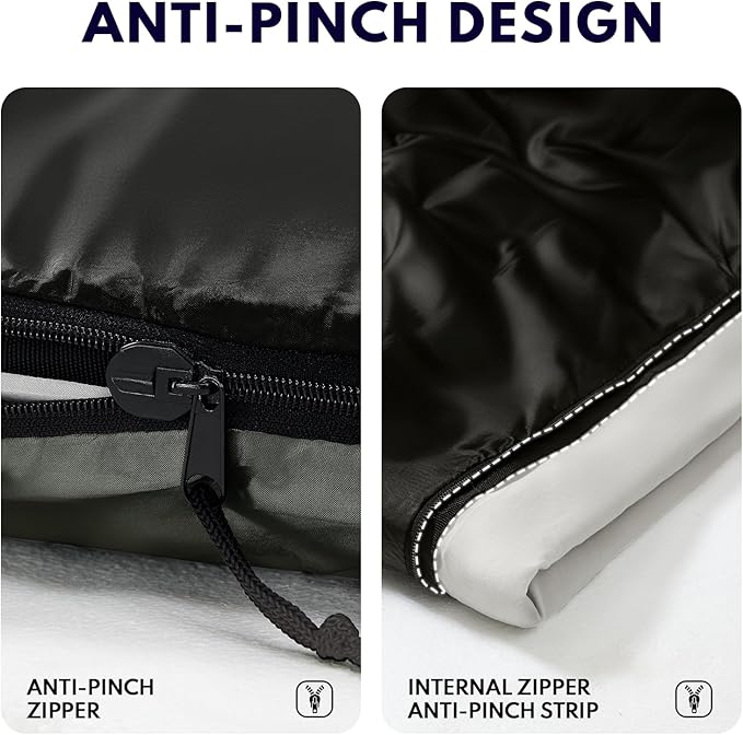 • 【LOTS OF SPACE TO WIGGLE AND PUT YOUR KNEES UP】You can unzip the feet separately to get some needed venting for additional comfort while still maintaining insulation. Two-way zipper with “zipper guard” to prevent stuck hooks effectively.