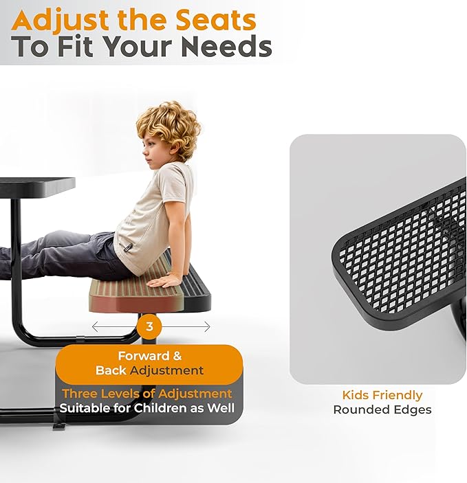 • Customizable Seating Position: Provides comfort for the whole family, ensuring everyone has the perfect fit. This table features adjustable seating position, allowing you to easily set the seats closer for children or further apart for adults.