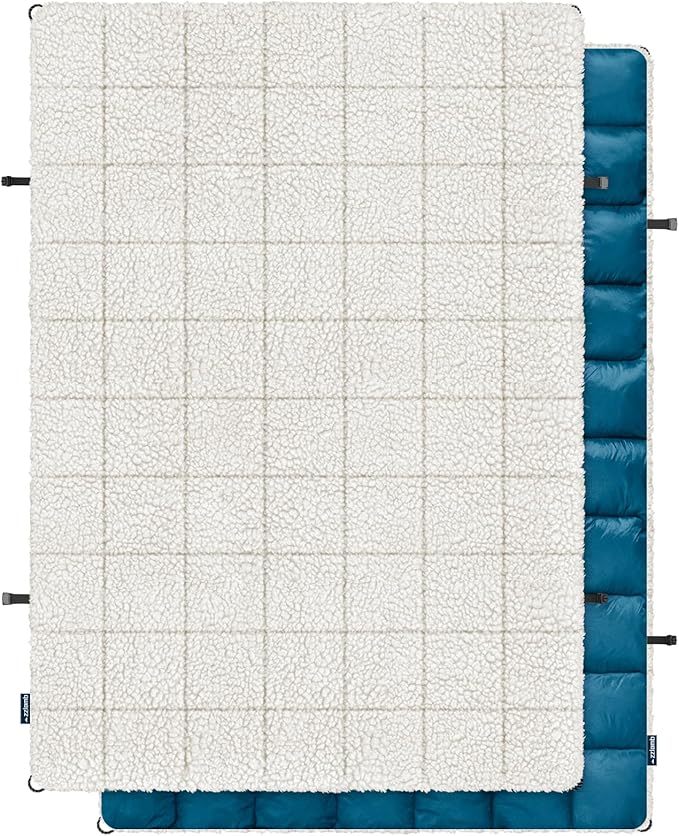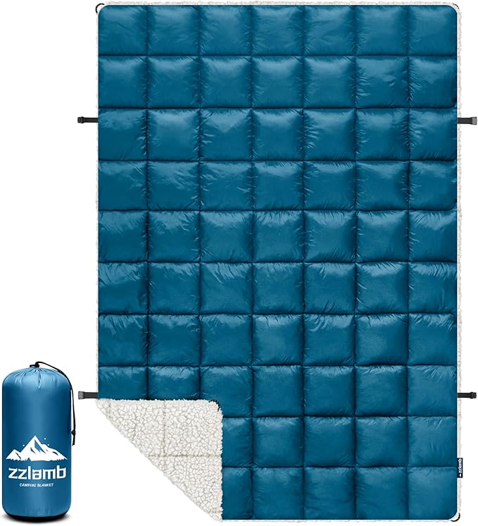 zzlamb Sherpa Puffy Camping Blanket,Packable Outdoor Warm Wearable Fleece Blankets for Cold Weather,Thick Camp Quilt with Sherpa Lining for Sleeping,Traveling,Backpacking,Picnics,Beach,Stadium 52x75in