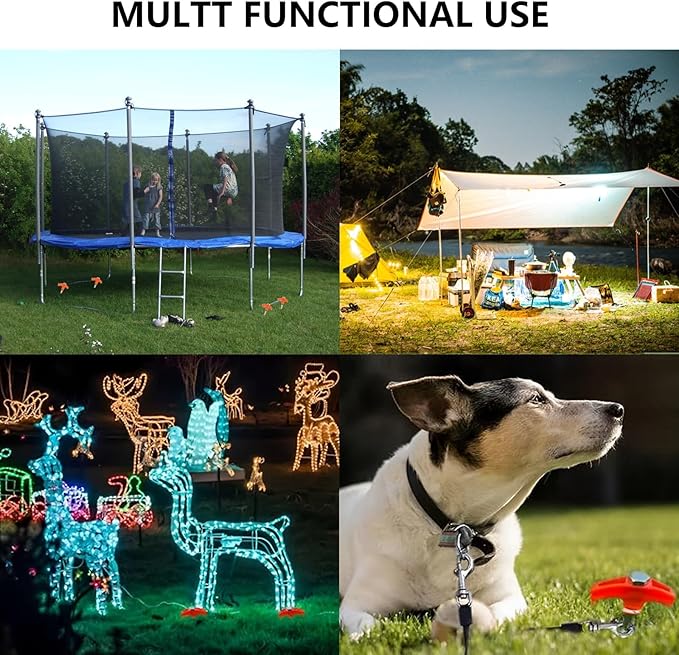 • 【Versatile Multi-Purpose】 The inflatable decoration stakes can not only be used to fix ordinary camping tents but also canopies, tarps, picnic mats, or even secure dog leashes. They are quite useful camping travel tools. These stakes for inflatables can be used for various occasions as well, such as garden lights, Thanksgiving, Halloween pumpkin lights and streetlights, Christmas Santa Claus and snowmen.