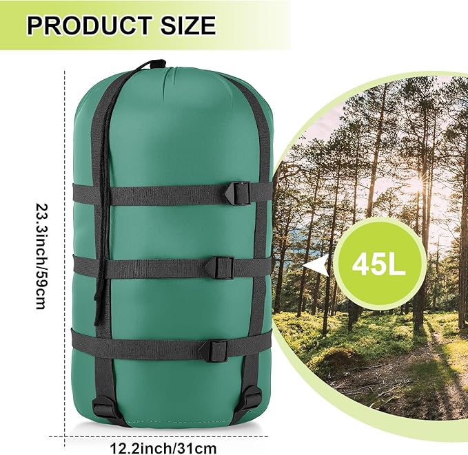 • Size Information: our compression stuff sack measures 45L (around 23.2 x 12.2 inches), offering versatility and adaptability; Bright color enhances your travel journey both visually and practically