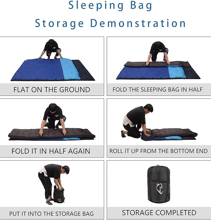 • VERSATILE DESIGN: Double sleeping bag perfect for two adults or teens, ideal for camping, backpacking, hiking, and traveling adventures