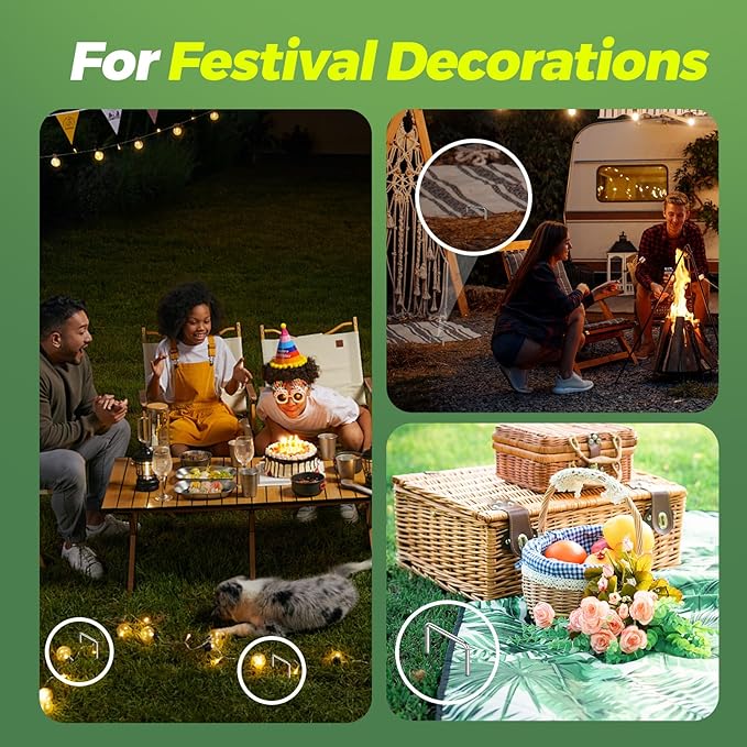 • 【Two Sizes】Verdeluxe versatile pins are useful for outdoor spaces.Need secure landscape fabric,weed barriers or garden hoses to keep your yard tidy?Grab the 25-pack. Tackling a big project-Anchor Christmas lights,Halloween balloon clusters or holiday decorations.Fence in dogs, rabbits, or squirrels to protect plants.The 50-pack has you covered. These ground stakes work everywhere: gardens, fields, backyards, even campsites. Fix vines, anchor balloons, secure fences—one tool, a hundred uses.