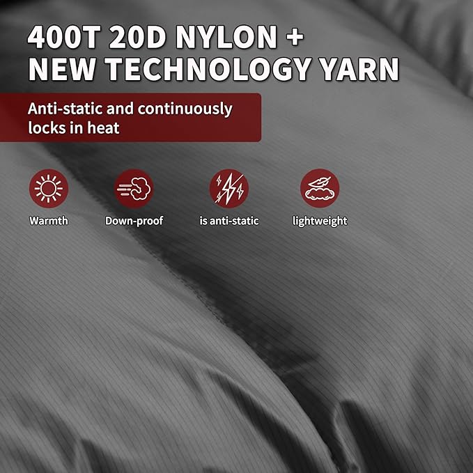 • Upgraded high-tech lining: The lining of adult sleeping bags has been upgraded and new technology silk threads have been added to continuously lock in heat and improve warmth retention. The exterior of the backpack sleeping bag is made of 400T 20D nylon, which is durable, tear-resistant, soft and breathable, and has anti-static function. It can provide you with the most comfortable sleeping environment in complex environments. Suitable for camping, backpacking and emergency escape.