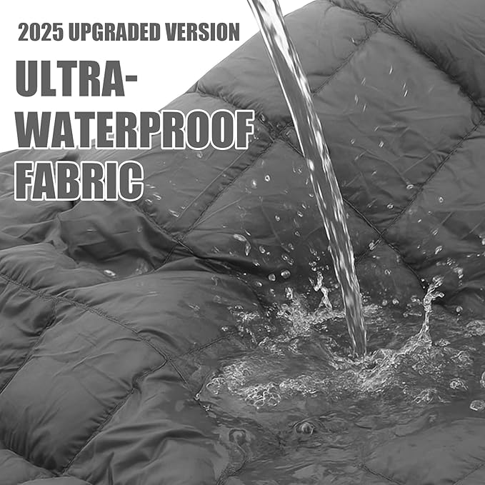 • All Weather Protection, Windproof, Waterproof & Warm: our down camping blanket is designed for reliability in unpredictable conditions; The durable 20D ripstop nylon fabric now features a new waterproof coating, effectively blocking moisture, dew, and light rain to keep you dry; Paired with its wind resistant design and high quality down insulation, it provides a reliable barrier against the cold; As with all our products, the down is ethically sourced and reusable, ensuring no harm to animals;