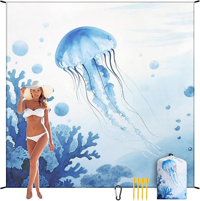 • 【Lightweight Beach Mat】The 79" X 83" beach mat weighs 0.87 lb; it can hold 2-4 adults and easily folds into a 5.1" x 7.5" tote bag.