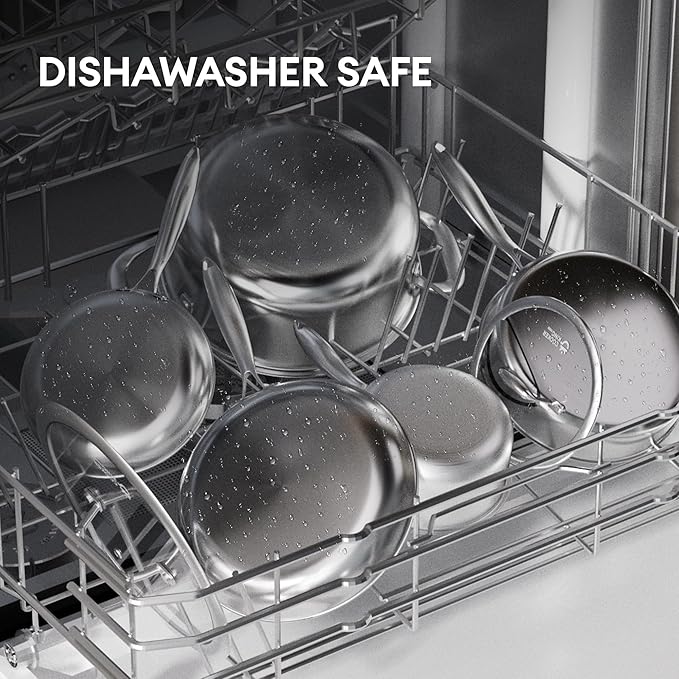 • 【Effortless Cleaning】: Discover the convenience of our dishwasher-safe stainless steel cookware set. These non stick frying pans and skillets make cleaning quick and easy.