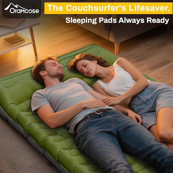 • 1 second putting together, free assembly: Can't get enough inflatable bed for multiple travelers? The snap button design on our Inflatable camping mattress allows you to splice multiple sleeping mats in 1 second, suitable for solo sleeping, double or multi-person family camping, say goodbye to the embarrassment of separation; color blocking and solid color dual choice, suitable for a variety of camping styles.