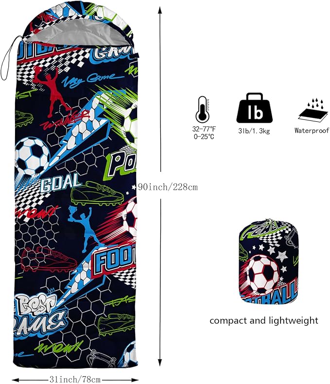 • 【FITS FOR 3 SEASONS】: SIZE - 31 by 90 inches (W x D). Our sleeping bag can be used in 3 seasons with a design temperature of 32℉-77℉(0℃-25℃). These bags also have a weather resistant waterproof design to keep you warm and prevent you from any dampness.