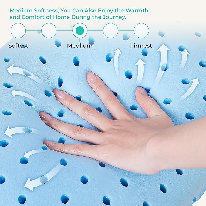 Travel Pillow Memory Foam Pillows, Camping Pillow-Compressible Medium Firm, Breathable Cover, Ideal Backpacking Hiking, Bed Pillows, Airplane and Car (Apricot Pink, L)
