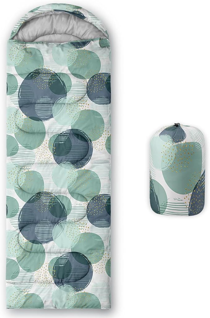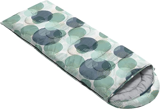 • SUITABLE:The sleeping bag can be used for 3 Seasons.SIZE:90.5"L x 31.5"W Suggenal extreme temperature: 41 ℉ -77 ℉.Applicable in a variety of scenarios,such as Travel camping pajamas party,It's very suitable for you to travel with your children.Half-circle hood with adjustable drawstring,which can keep you warm and prevent your humidity
