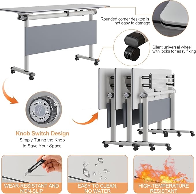 • One-Click Folding for Easy Setup:Simplify your workspace with a user-friendly folding mechanism. This office table is perfect for quick assembly and storage, fitting seamlessly into training spaces, conference rooms, or home offices.