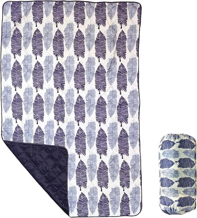 Waterproof Outdoor Blanket, 79" x 55" Large Packable Picnic Blankets, Foldable Picnic Mat for Park, Lawn, Grass, Beach, Concert (Ethnic Feather)