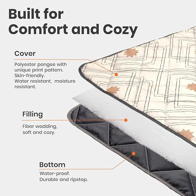 • DURABLE & COMFORTABLE - Engineered with a tear-resistant top layer and reinforced ripstop backing, this lightweight yet sturdy blanket withstands your outdoor use. The triple-layer construction with fiberfill padding delivers cushioned comfort while blocking ground moisture to keep you dry.