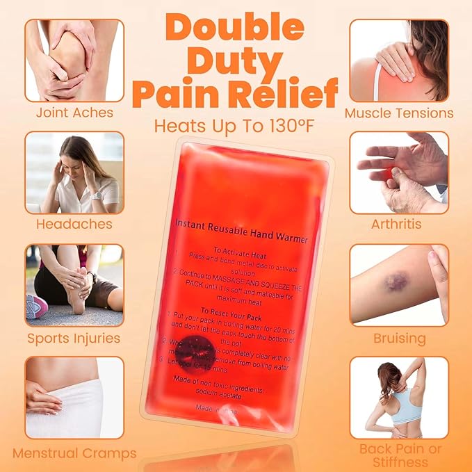 • INSTANT WARMTH: Say goodbye to cold hands and feet. Our reusable hand warmers heat up quickly, providing quick relief and comfort when you need it most.