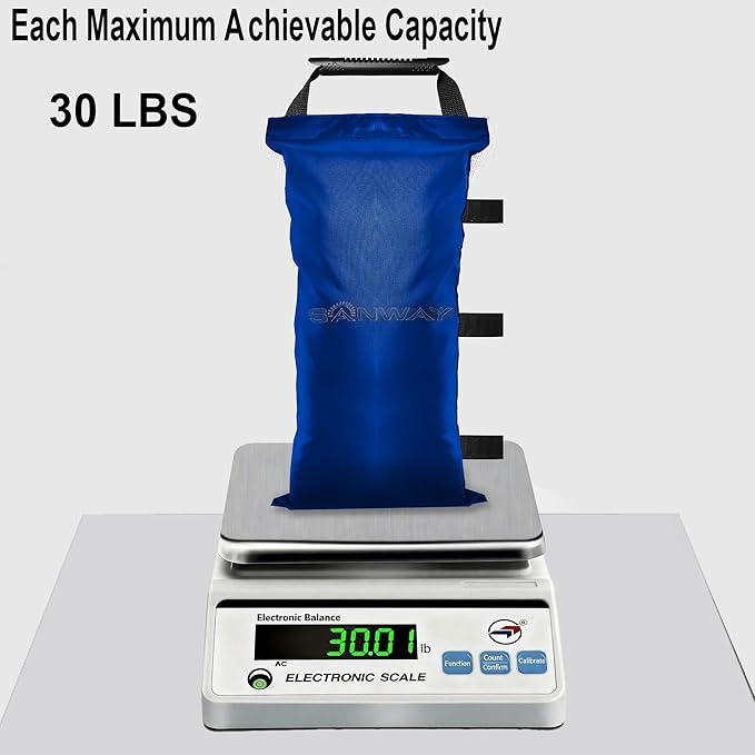 • 【NOTES】Sandbags only; sand and filler not included; These sand bags for weight cannot be filled with water directly. Maximum weight capacity per bag: 30 lbs. Recommended filling: 80% capacity to prevent overexpansion.