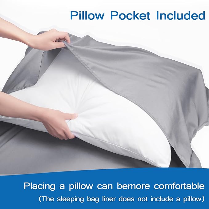 Sleeping Bag Liners with 2 Way Zipper, Adult Sleep Sack Travel Sheets for Hotel/Hostels/Business Trips, Lightweight Single Camping Sheet Sleep Bag Liner Warm & Cold Weather, Gray