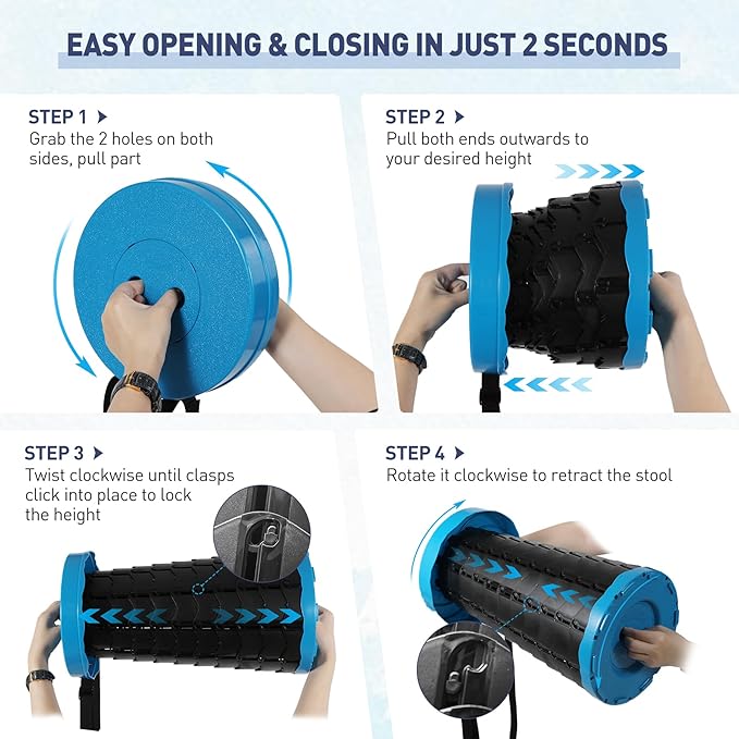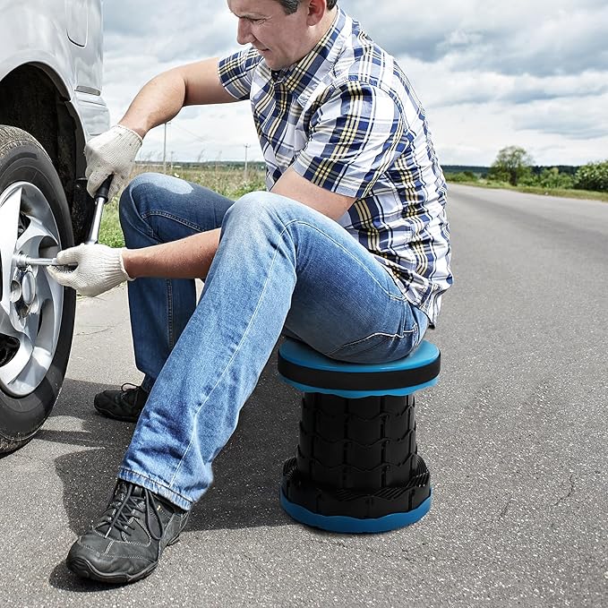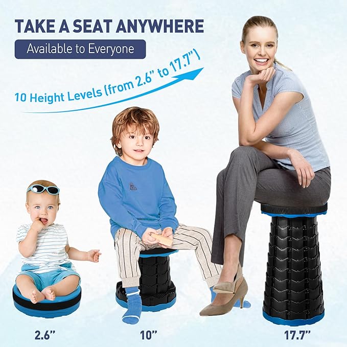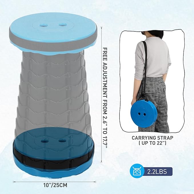 Upgraded Collapsible Stool, Portable Folding Stool with Load Capacity 500lbs for Adults, Sturdy Telescopic Seat for Camping Fishing Hiking BBQ, Blue
