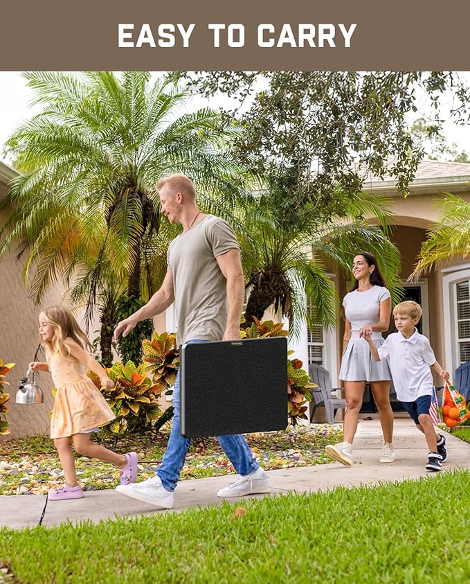 • Durable & Easy To Clean: Foldable table with an HDPE tabletop and sturdy all-steel frame, supporting up to 75 lbs. Features an easy-to-clean surface, matte non-slip surface. Plastic foot caps to prevent sliding and floor scratches