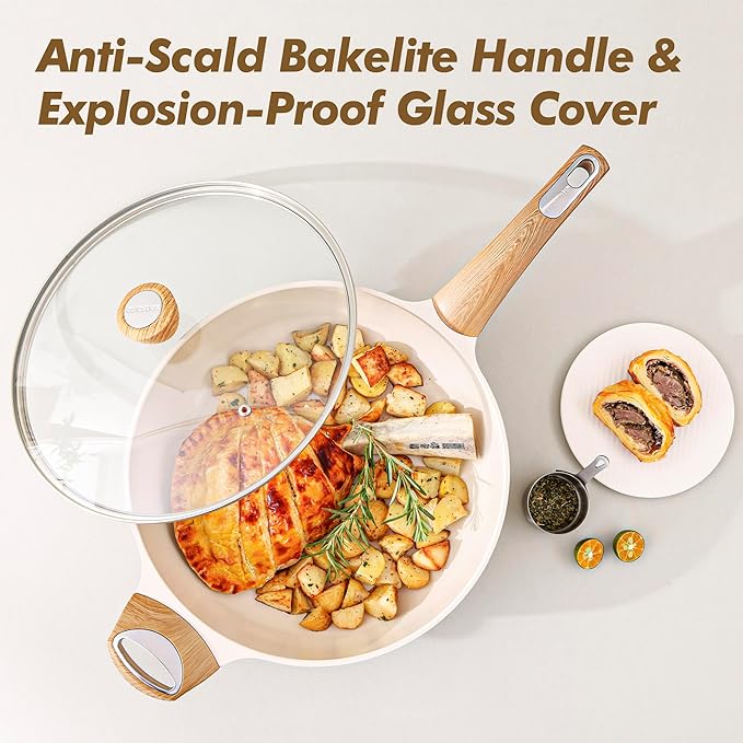 • Naturall Nonstick - Ceramic non-stick is healthier than Teflon coating! Scratch-resistant with excellent food release. Only less oil is needed for cooking, for a healthy, low-fat diet.