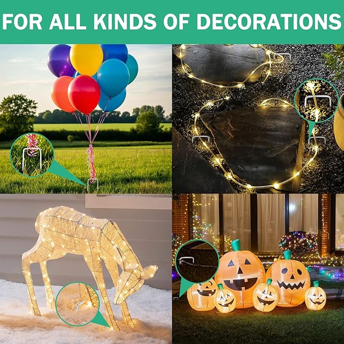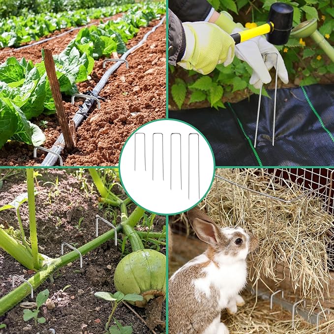 • 【Wide Application】The lawn staples can fix garden hose, weed barrier fabric, sod, plant roots, fences, barbed wire, landscape fabric to keep your garden clean and tidy. Help you to fence in dogs, squirrels, rabbits, hold down boundary or perimeter fence to prevent animal digging, and secure deer and bird nets. Weed barrier stakes also useful for securing tents, tarps, outdoor wires and ropes, Christmas lights stakes, inflatables, and more during outdoor events and holiday decorations.