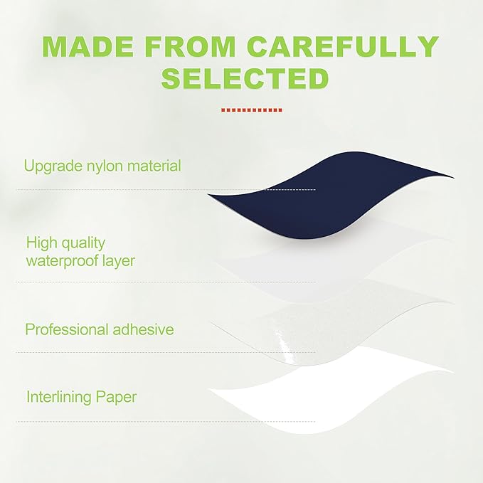 • High Quality Material: we choose high-density nylon as the base material and use a special adhesive formulation process to make the fabric and the adhesive layer blend perfectly, forming a waterproof, tear-resistant, adhesive, durable and flexible repair patch that effectively extends its service life.
