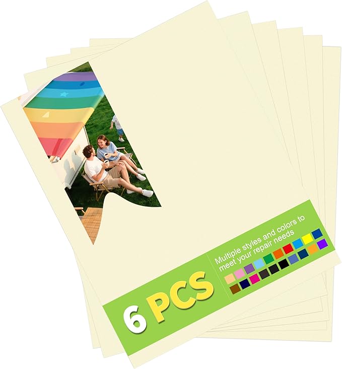 7x9in Nylon Repair Patch,Tent Repair Kit,Self Adhesive Waterproof Fabric Repair Tape for Tent, Umbrella, Sleeping Bag, Down Jackets,Knapsack.(Beige,6ps)
