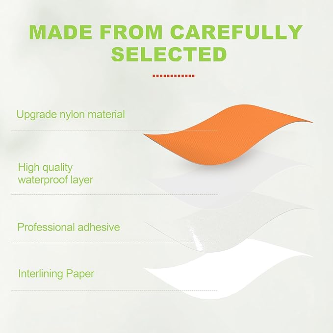 • Selected High Quality Materials: We select high-density nylon fibers as the substrate, and use a special glue compounding process to make the perfect fusion of fabric and adhesive layer, forming a waterproof, tear-resistant, adhesive, durable and flexible repair patches, effectively extending the service life of the repaired area.