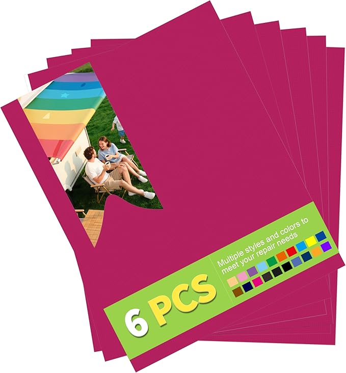 7x9in Nylon Repair Patch,Tent Repair Kit,Self Adhesive Waterproof Fabric Repair Tape for Tent, Umbrella, Sleeping Bag, Down Jackets,Knapsack. (Rose Red,6ps)