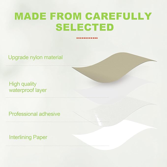 • Selected High Quality Materials: We select high-density nylon fibers as the substrate, and use a special glue compounding process to make the perfect fusion of fabric and adhesive layer, forming a waterproof, tear-resistant, adhesive, durable and flexible repair patches, effectively extending the service life of the repaired area.