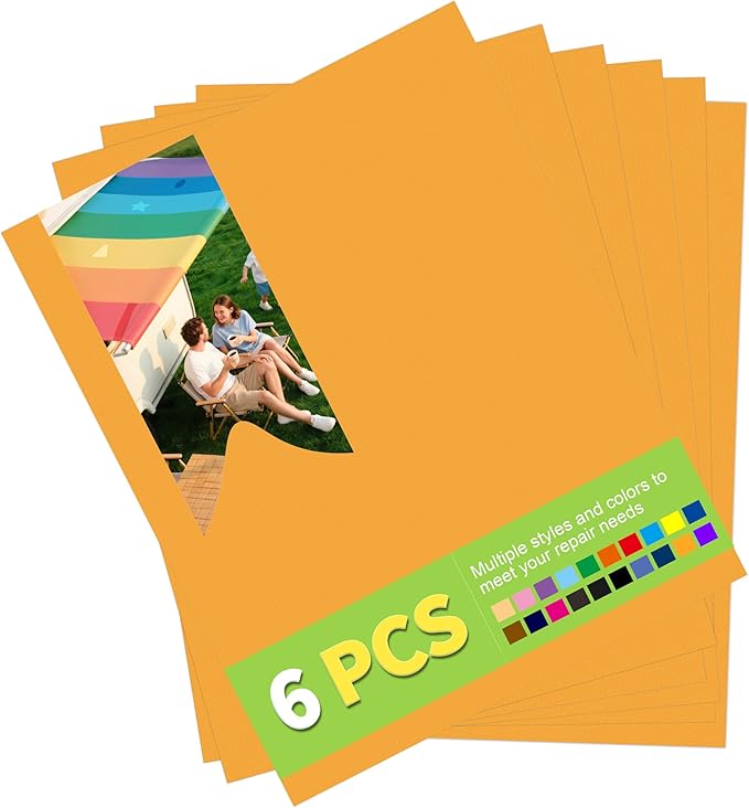 7x9in Nylon Repair Patch,Tent Repair Kit,Self Adhesive Waterproof Fabric Repair Tape for Tent, Umbrella, Sleeping Bag, Down Jackets,Knapsack. (Tangerine Yellow,6ps)