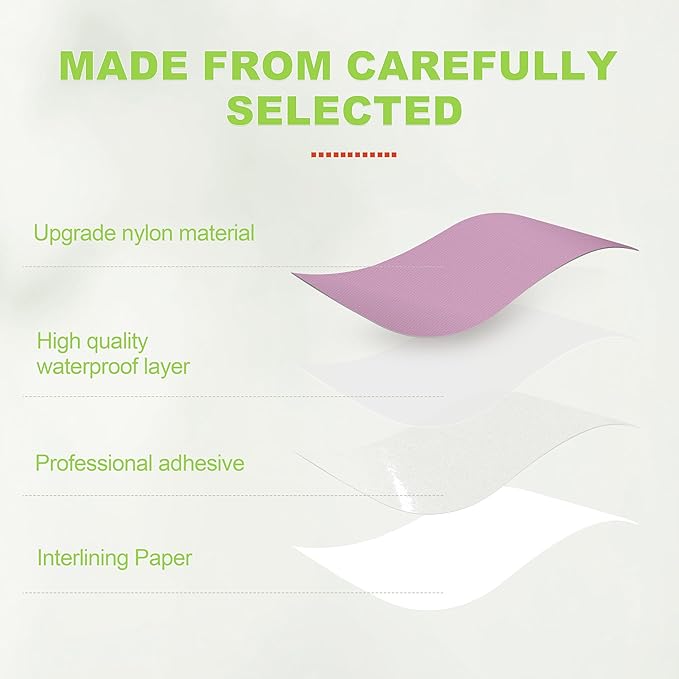 • Professional Grade Adhesive: The adhesive layer of the tent patch kit is firm and evenly distributed, able to withstand daily pulling and pulling, can be tightly bonded and naturally fit on the surface of nylon, PVC, vinyl, canvas, fabrics and other surfaces, with a long-lasting and firm repair effect
