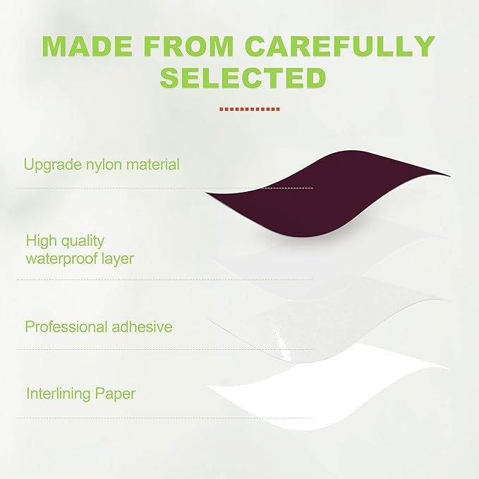 • Professional Grade Adhesive: The adhesive layer of the tent patch kit is firm and evenly distributed, able to withstand daily pulling and pulling, can be tightly bonded and naturally fit on the surface of nylon, PVC, vinyl, canvas, fabrics and other surfaces, with a long-lasting and firm repair effect
