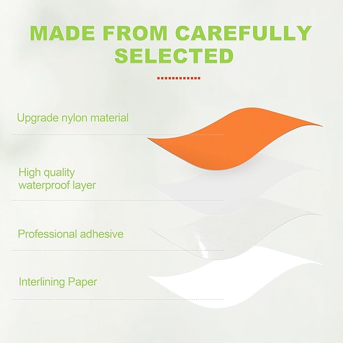 • High Quality Material: we choose high-density nylon as the base material and use a special adhesive formulation process to make the fabric and the adhesive layer blend perfectly, forming a waterproof, tear-resistant, adhesive, durable and flexible repair patch that effectively extends its service life.
