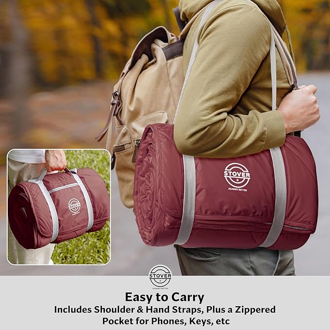 STOVER Waterproof Stadium Blanket – Portable Outdoor Camping Blanket for Travel, Picnics, or Sports – Warm, Windproof, Lightweight, and Packable (Summit Red)