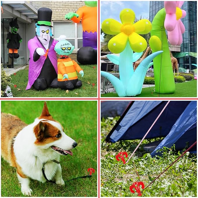 • STURDY AND DURABLE: The yard inflatable plastic stakes and tie-down hooks are made of high-quality plastic material, sturdy and reliable. The long ropes are made of premium nylon material, which is not easy to deform or break, allowing for long-term outdoor use