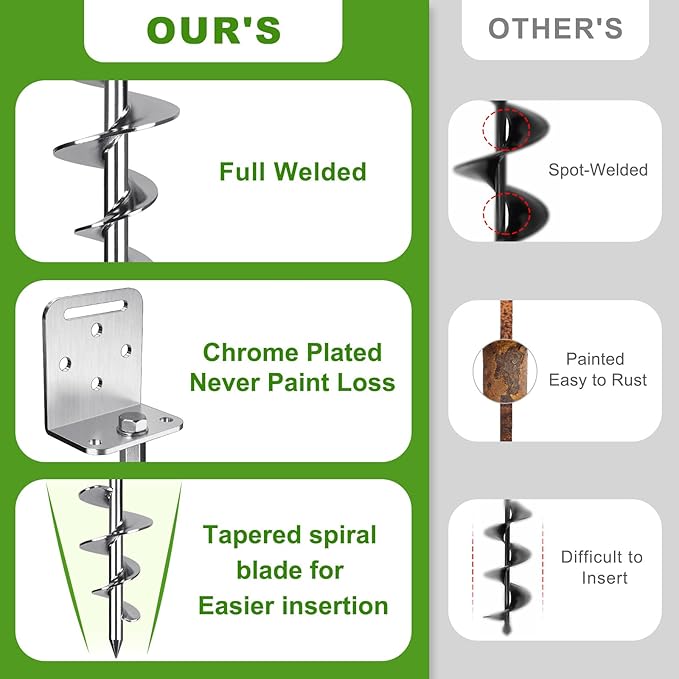• Fully Welded 2.8 Wide Tapered Spiral: Different from other common ground anchors, our 30" trampoline anchors is spiral blade tapers from wide to narrow for insert various ground. And fully welded, which is more durable.